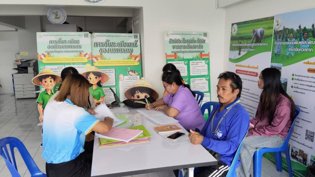 วันที่ 16 ตุลาคม 2568 เวลา 10.00 น. นางรวยทิพย์ อุตมะ หัวหน้าสำนักงานกองทุนฟื้นฟูและพัฒนาเกษตรกร สาขาจังหวัดตาก พร้อมด้วยเจ้าหน้าที่สำนักงานฯ มอบเงินให้กับองค์กรเกษตรกรที่ได้รับอนุมัติโครงการฟื้นฟูและพัฒนาเกษตรกร ประจำปีงบประมาณ 2568 ประเภทเงินกู้ยืม จำนวน 3 องค์กร งบประมาณที่ได้รับอนุมัติ รวมทั้งสิ้น 1,480,000 บาท โดยได้ดำเนินการจ่ายเงิน ให้กับองค์กรเกษตรกร ตามเงื่อนไขที่กำหนดไว้ในสัญญา ณ สำนักงานกองทุนฟื้นฟูและพัฒนาเกษตรกร สาขาจังหวัดตาก