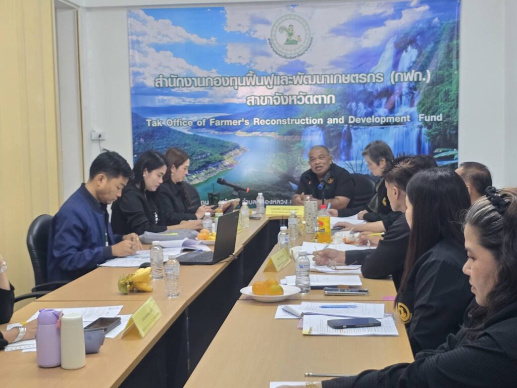 วันศุกร์ที่ 26 ธันวาคม 2568 สำนักงานกองทุนฟื้นฟูและพัฒนาเกษตรกร สาขาจังหวัดตาก ได้จัดประชุมคณะอนุกรรมการกองทุนฟื้นฟูและพัฒนาเกษตรกร จังหวัดตาก ครั้งที่ 11/2568 โดยมี นายสุวิทย์ เสือเล็ก เป็นประธานและนางรวยทิพย์ อุตมะ ทำหน้าที่เลขานุการ เพื่อพิจารณาตามวาระ ดังนี้